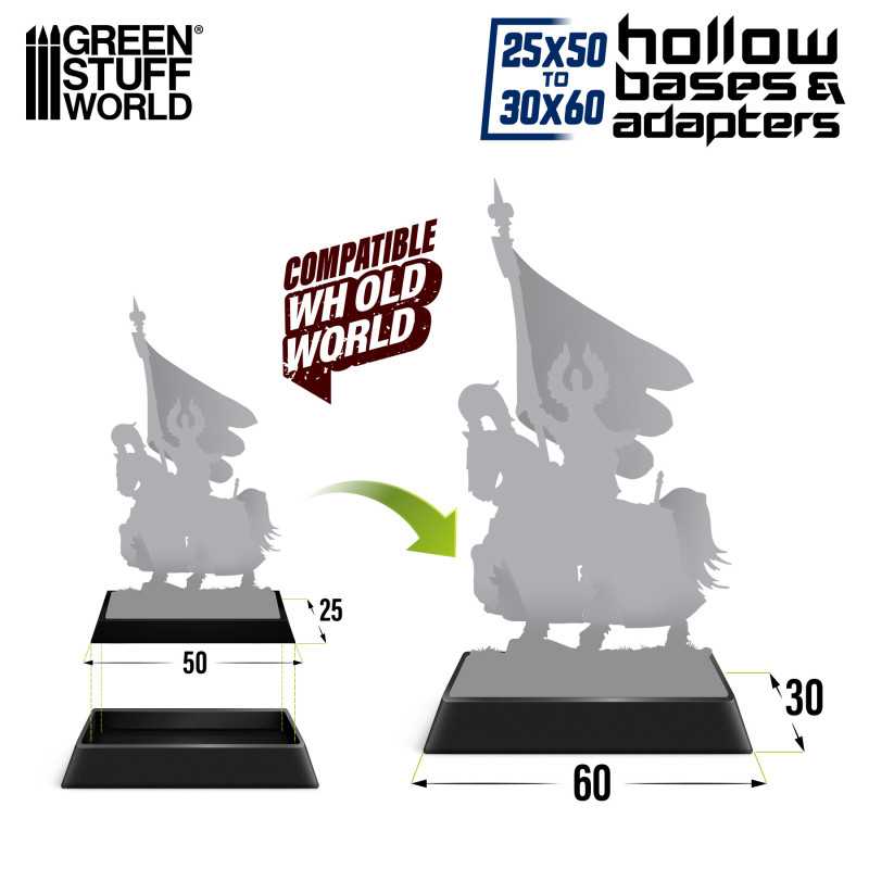 Green Stuff World's empty 30x60mm plastic bases can act as adapters for 25x50mm rectangular bases , allowing you to convert the 50mm format into the larger 60mm base. This is particularly useful when using them as adapters for Warhammer The Old World bases. , where the need to use old miniatures becomes a reality.
