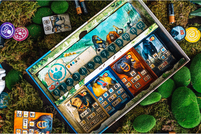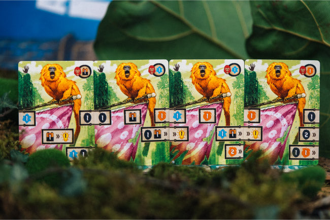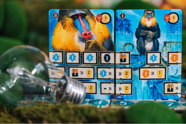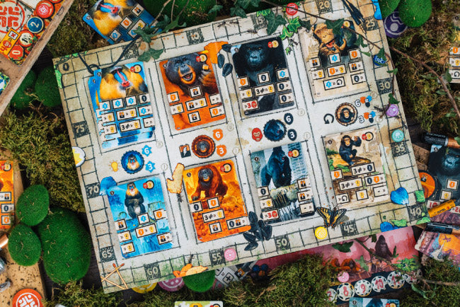 You start the game with a group of tamarins , and turn after turn you will use the cards in your hand to activate effective combinations , obtain precious resources and earn victory points . The further you advance, the more you will be able to attract new evolved apes to your tribe, such as powerful gorillas , ingenious orangutans , versatile chimpanzees and wise mandrills .