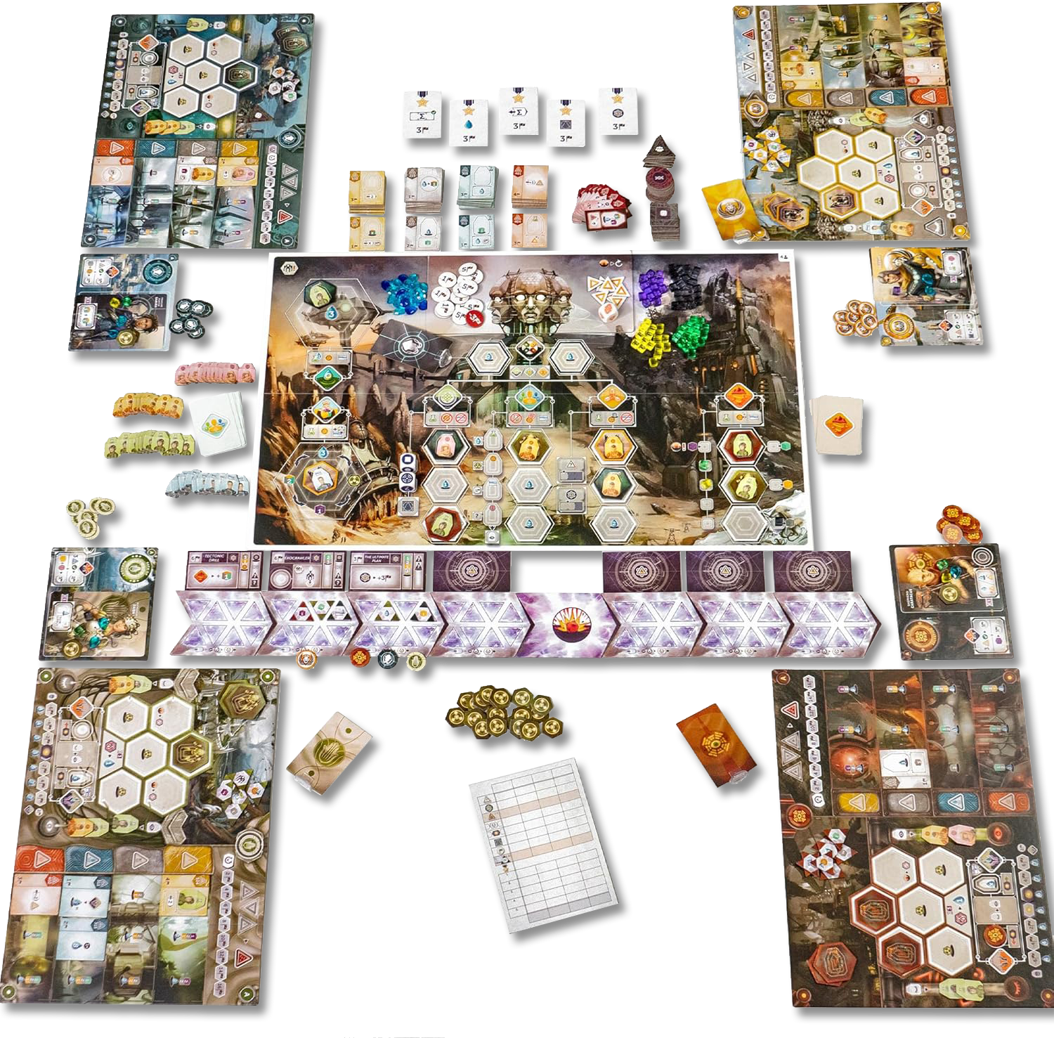 An unmissable title for lovers of complex strategy board games , signed by Dávid Turczi, Richard Amann and Viktor Peter , with evocative illustrations by Villo Farkas and other talented artists.