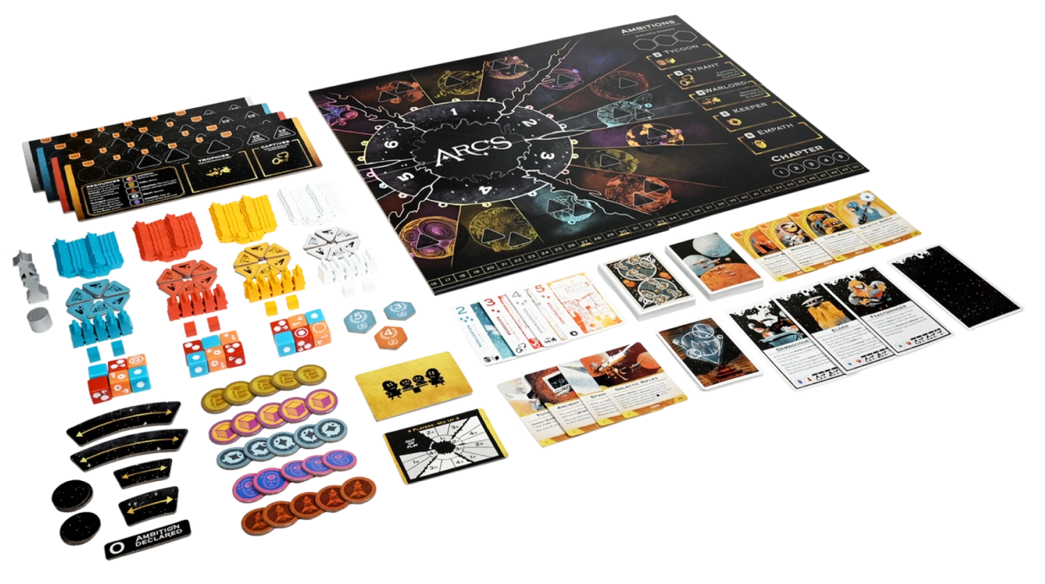 Arcs is an immersive science fiction board game for 2-4 players , set in a dark and unpredictable universe . Prepare to experience epic space battles and surprising plot twists .