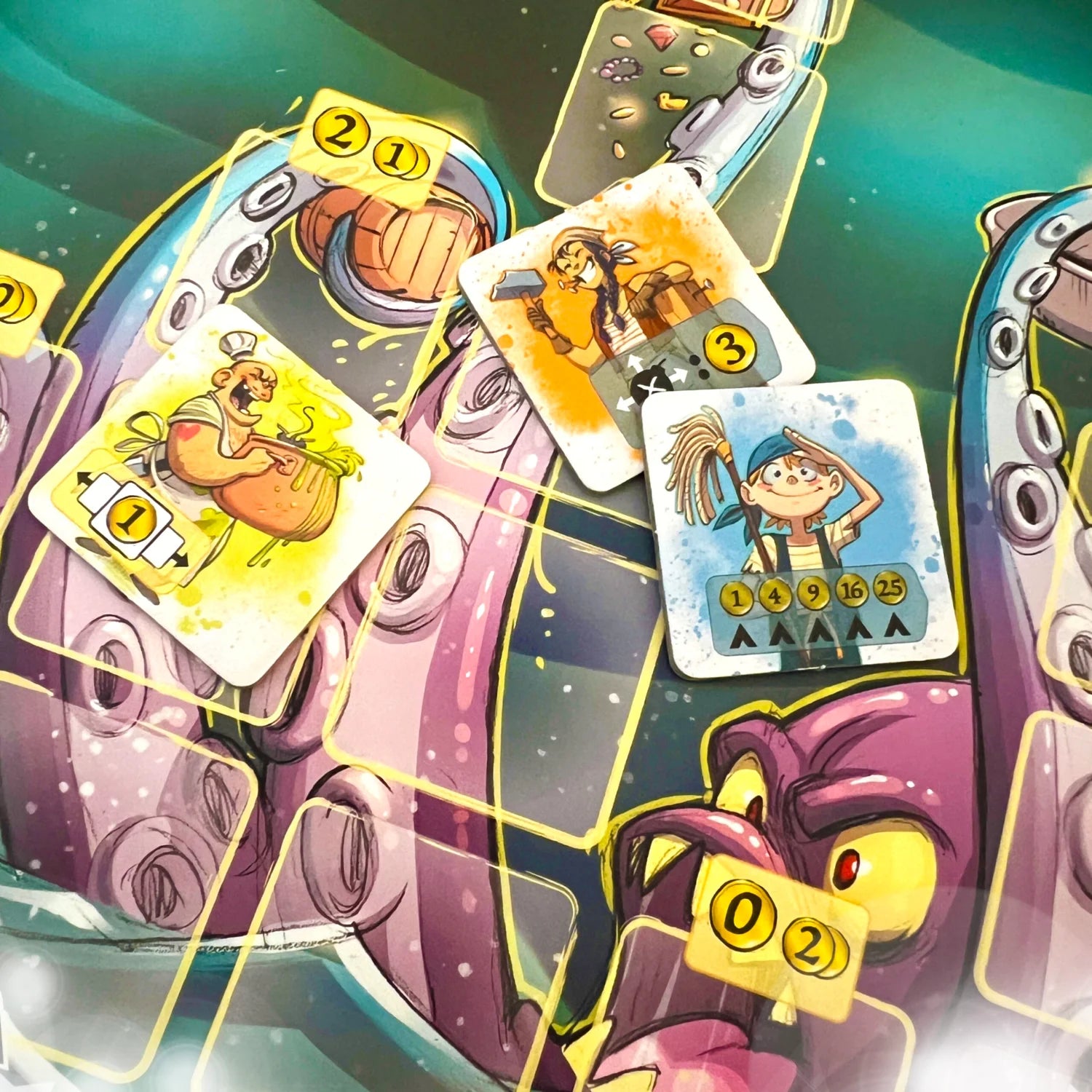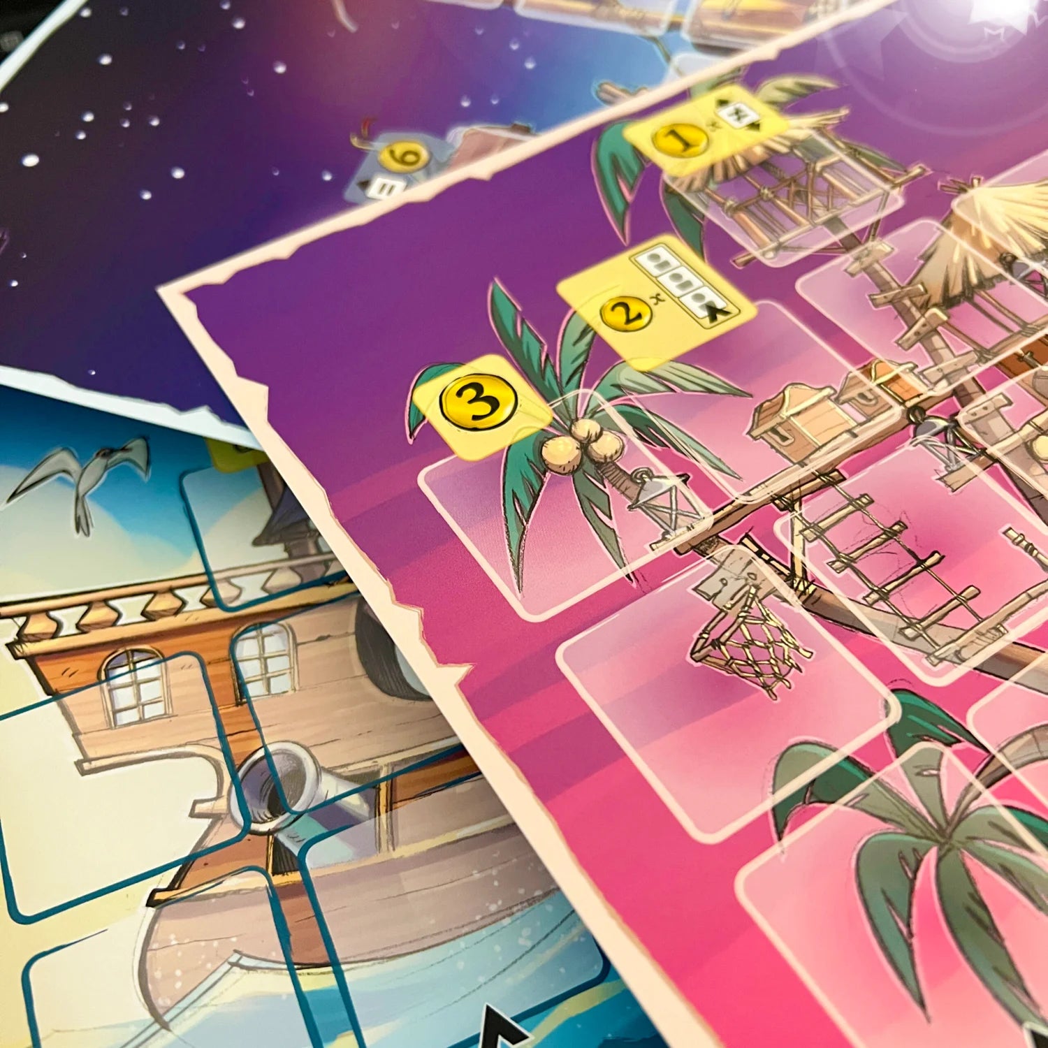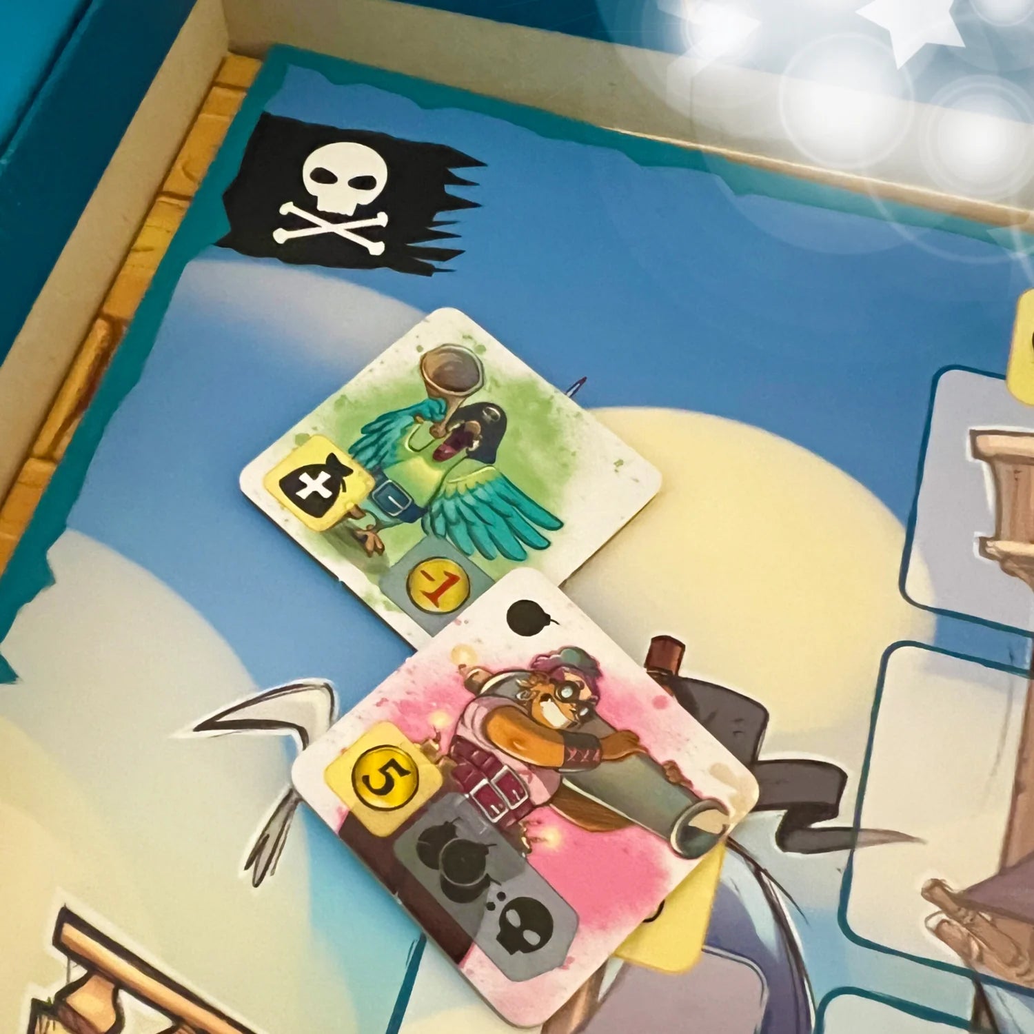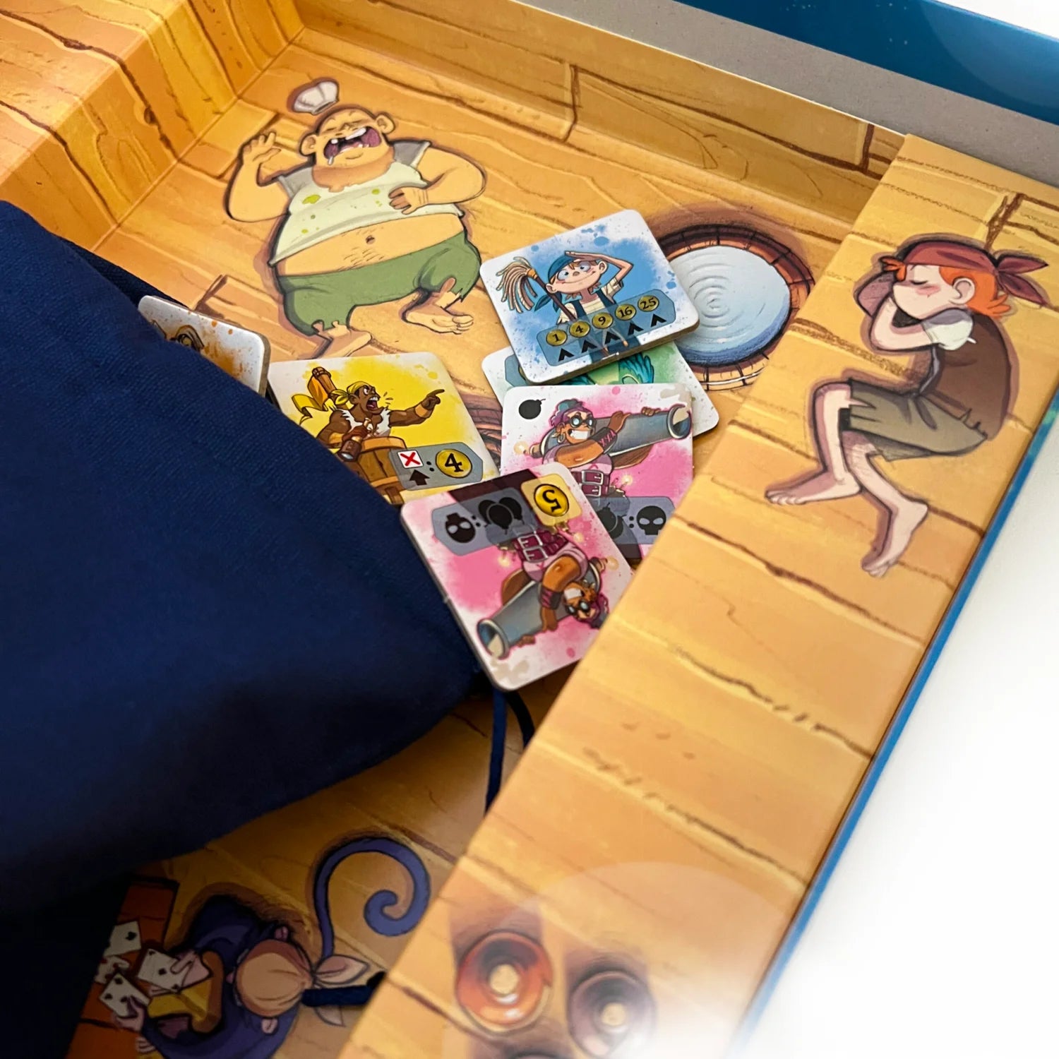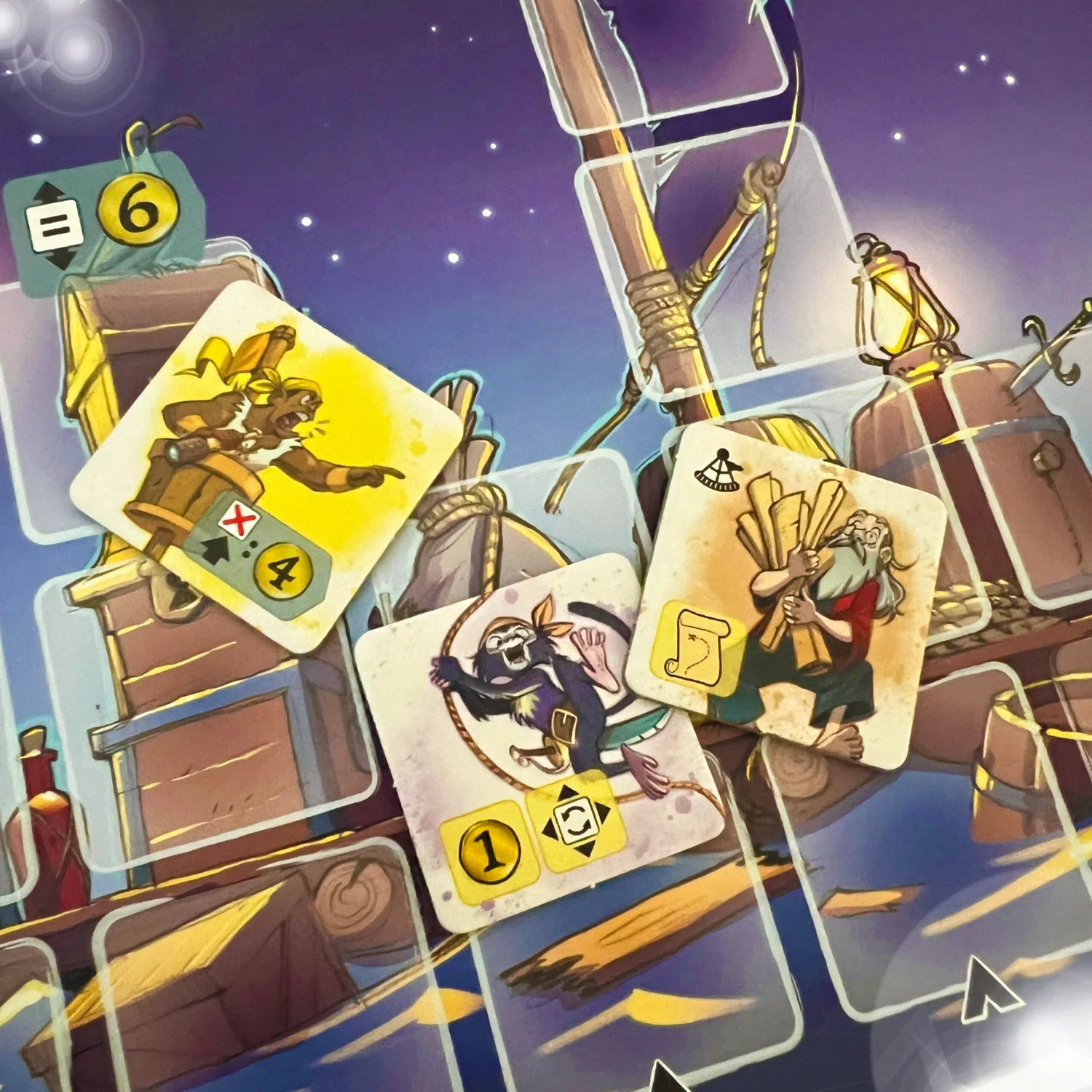 Draw character tiles from a bag and cleverly place them on your personal board. Each tile activates a unique effect and earns you points based on its placement and combinations with other tiles. In the end, only the pirate with the richest loot will be the winner!