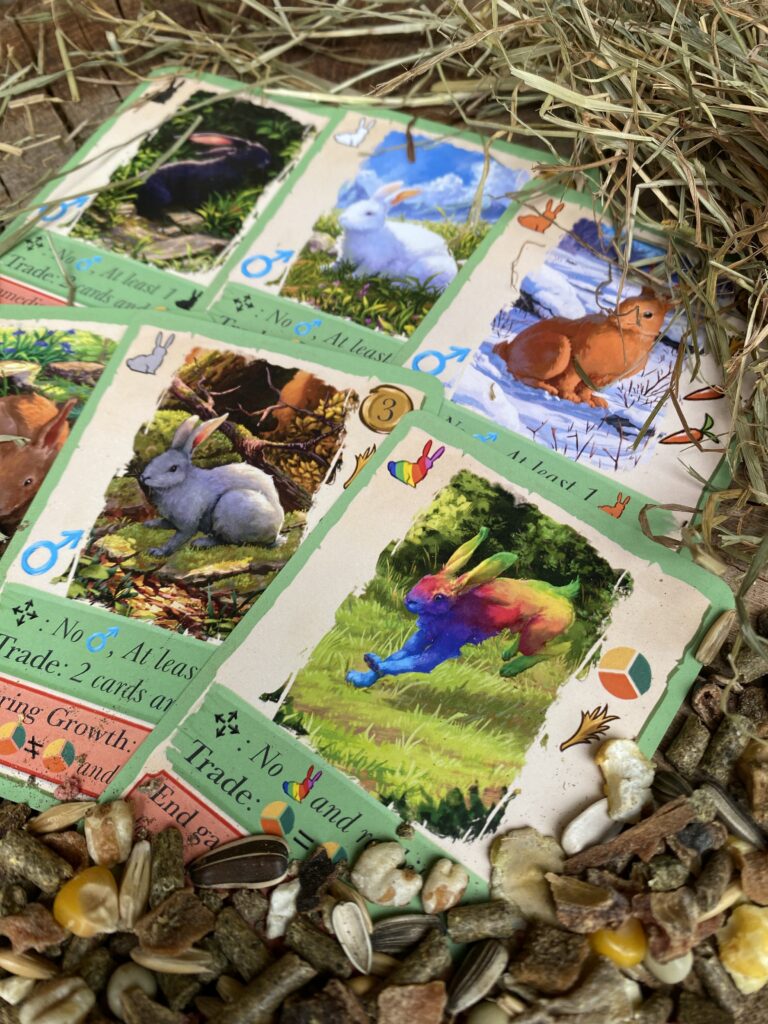 Each player will have to create their own rabbit farm, placing the cards in a 3×3 grid following the specific placement rules indicated on each card.