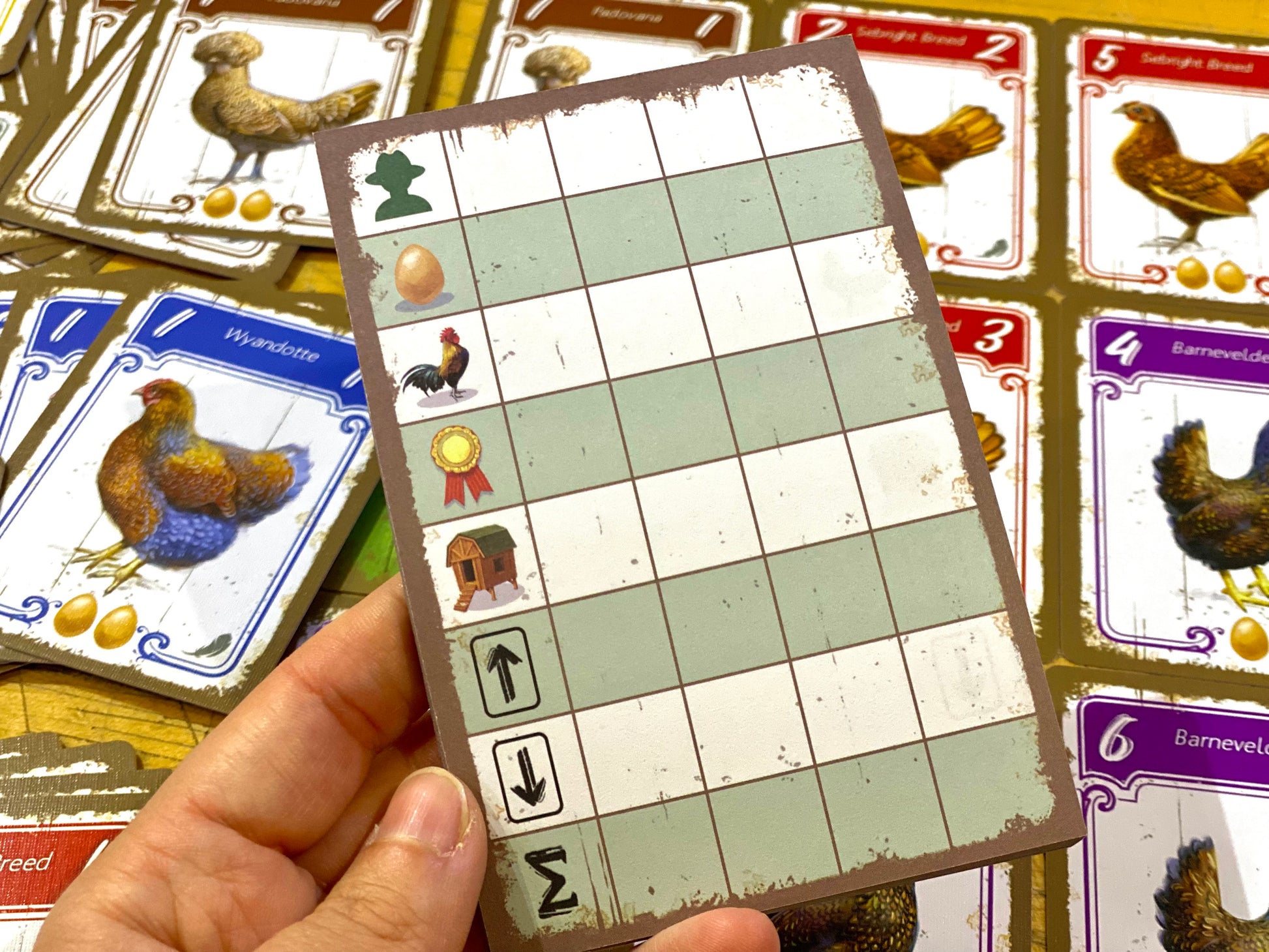Each turn, you'll place a new Chicken card in your farmyard , aiming to make it as productive and harmonious as possible. The placement rules are simple, but creating large flocks of the same breed of chickens will be a real strategic challenge.