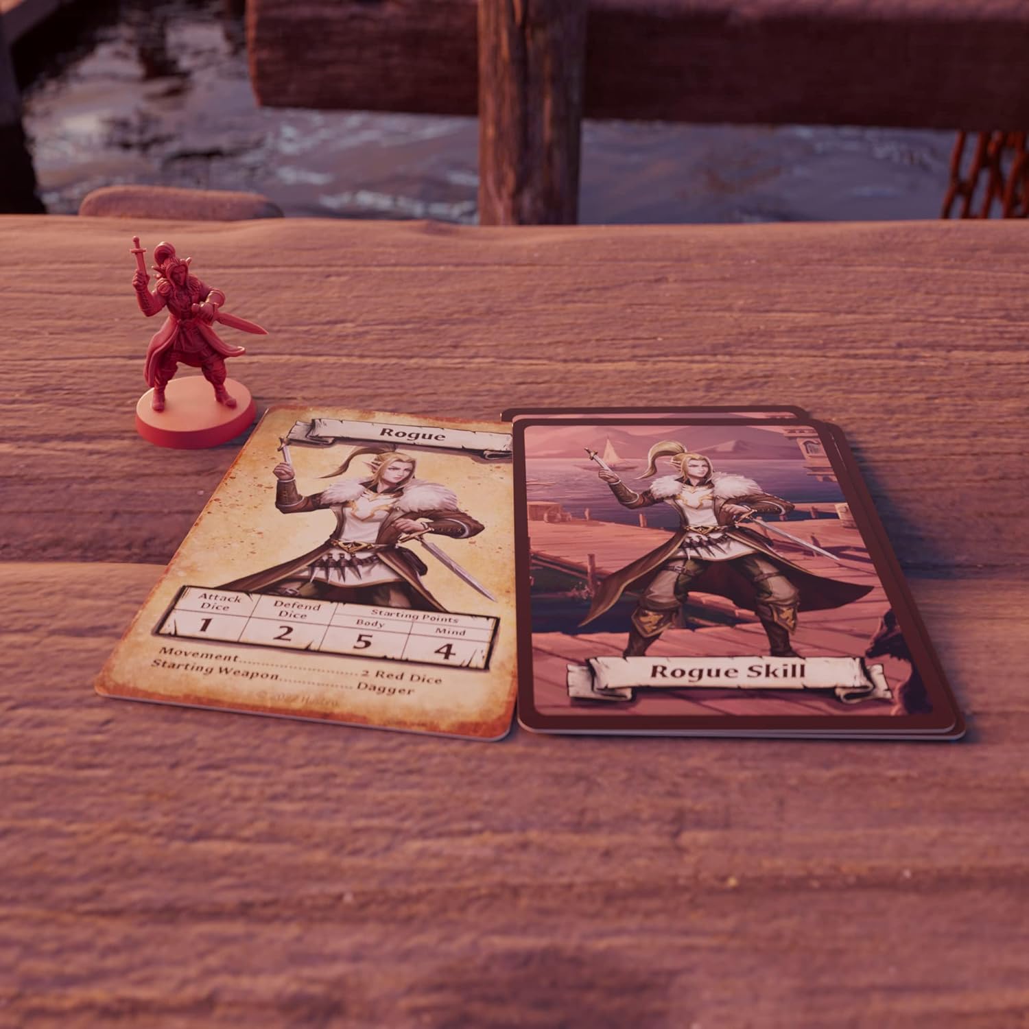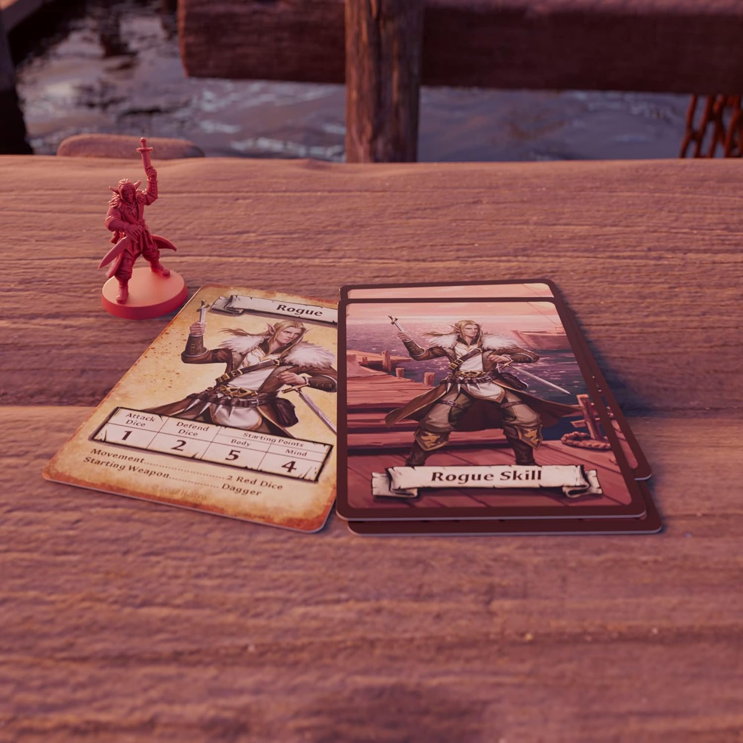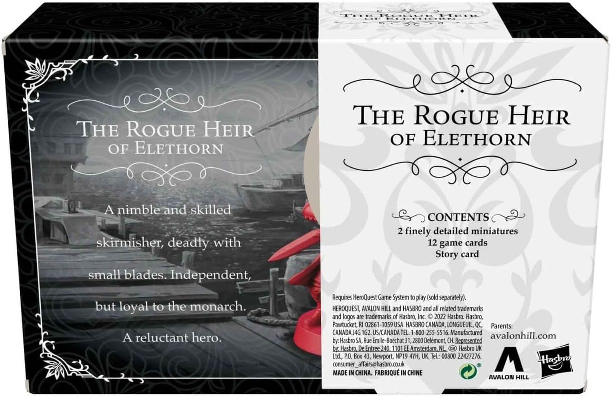 This collector's edition item includes 2 highly detailed Rogue Heir of Elethorn figures with powers and abilities not seen in HeroQuest figures. Also includes 12 playing cards and a story card with an important letter from a secret group, addressed to the rogue heir.