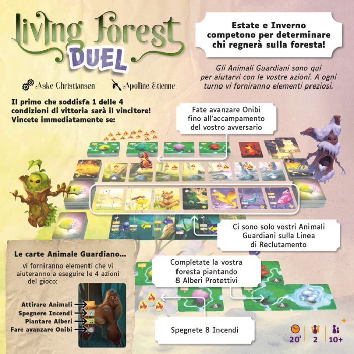 In Living Forest Duel, the spirits of the Summer and Winter seasons compete in a battle for dominance of the sacred forest. This two-player version of the popular Living Forest game offers a tactical experience where every choice can determine success or failure. Participants take on the role of powerful spirits, intent on defending the forest and proving their superiority as the ultimate guardians.
