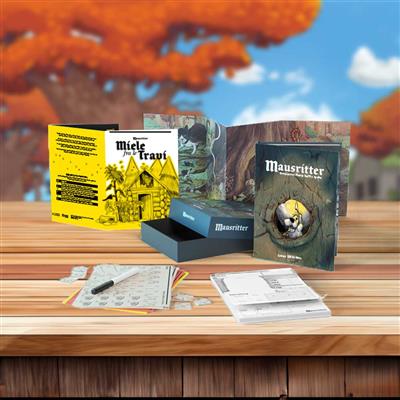 Includes: Core Rulebook (44 pages), Game Master screen, Honey Among the Rafters adventure, character sheets, item and condition markers, dry-erase marker. PDF included.