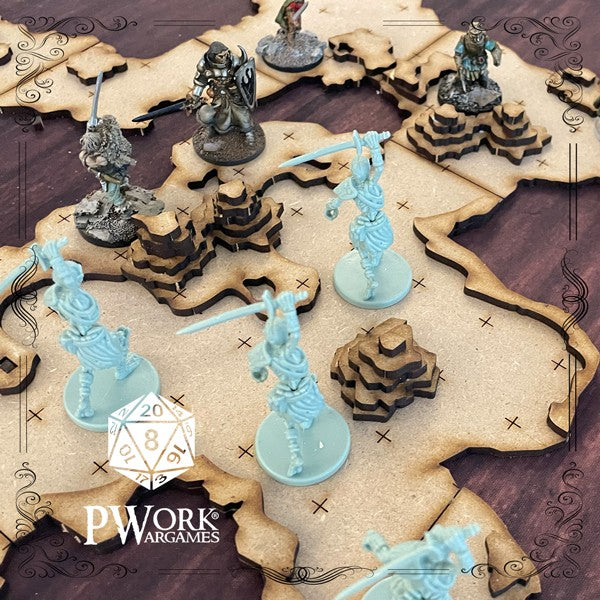 The Cave set includes 17 different modular MDF tiles and numerous elements that can be used to create a cave-based combat scenario.