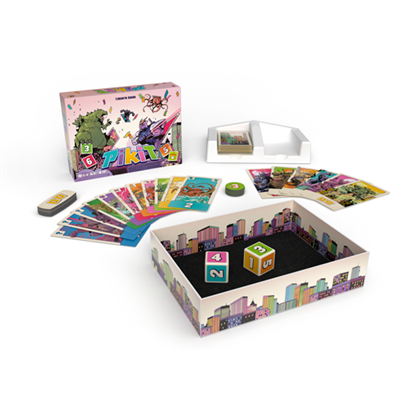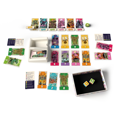 Roll the dice to summon Kaijū (huge creatures) or Mecha (powerful robots), and collect the corresponding cards. Use these cards to exploit their abilities during the game or cleverly save them until the end to accumulate precious points.