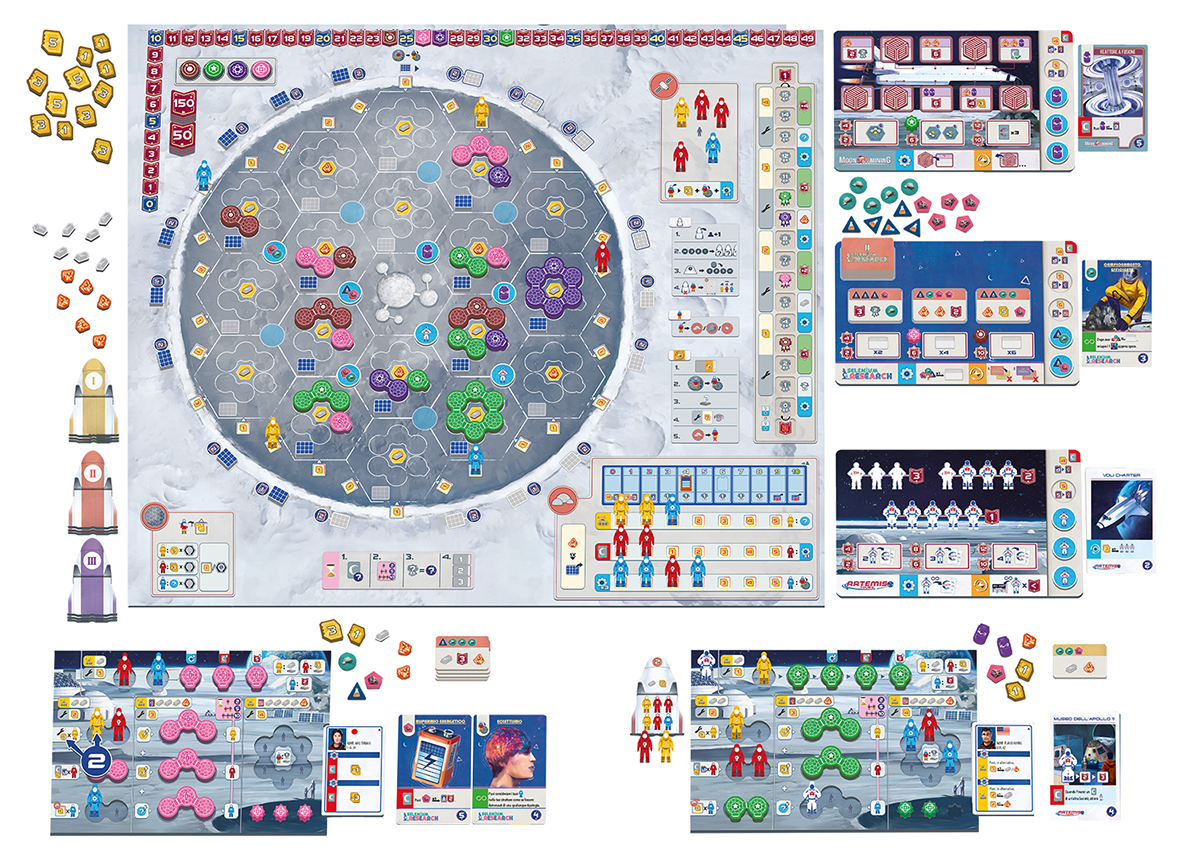 👨🚀 Action Phase – the heart of the game: deploy your astronauts on the Moon to collect resources , build structures or finance projects .
