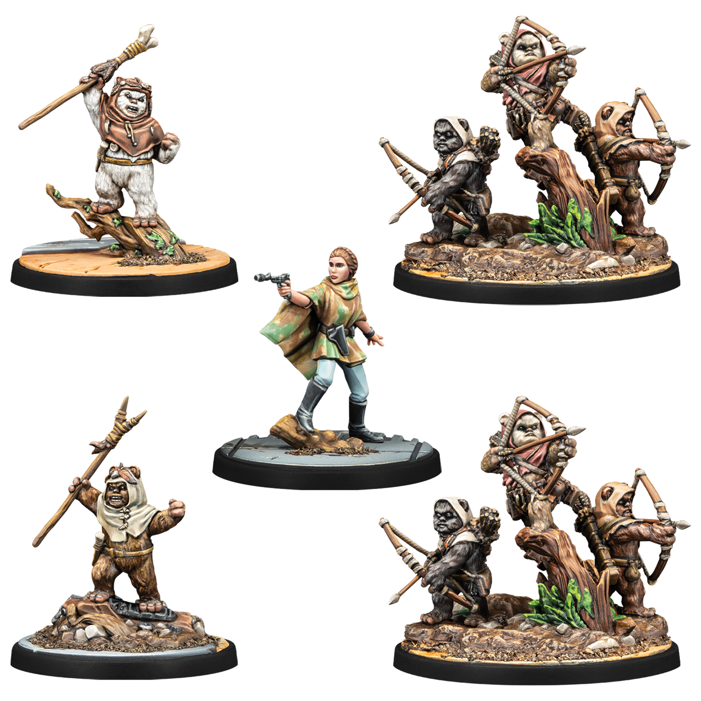Featuring Leia Organa and Chief Chirpa as primary units, the Ewok Paploo as a secondary unit, and two bow-wielding Ewok Hunters as support units, this pack offers players a variety of new options for building Galactic Civil War-era squads.