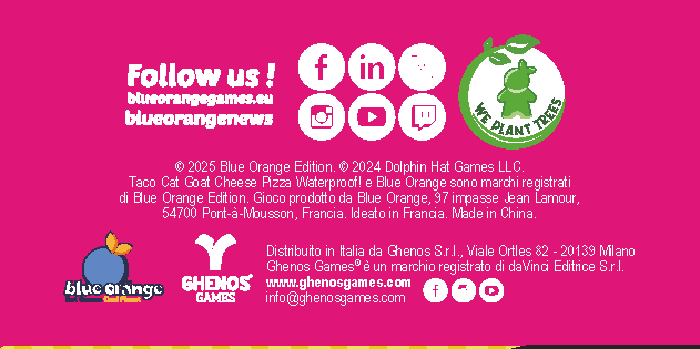 Fun, fast and now also waterproof: Taco Gatto Capra Cacio Pizza Waterproof is the ideal card game for parties, trips and summer days , where quick reflexes and laughter are guaranteed.