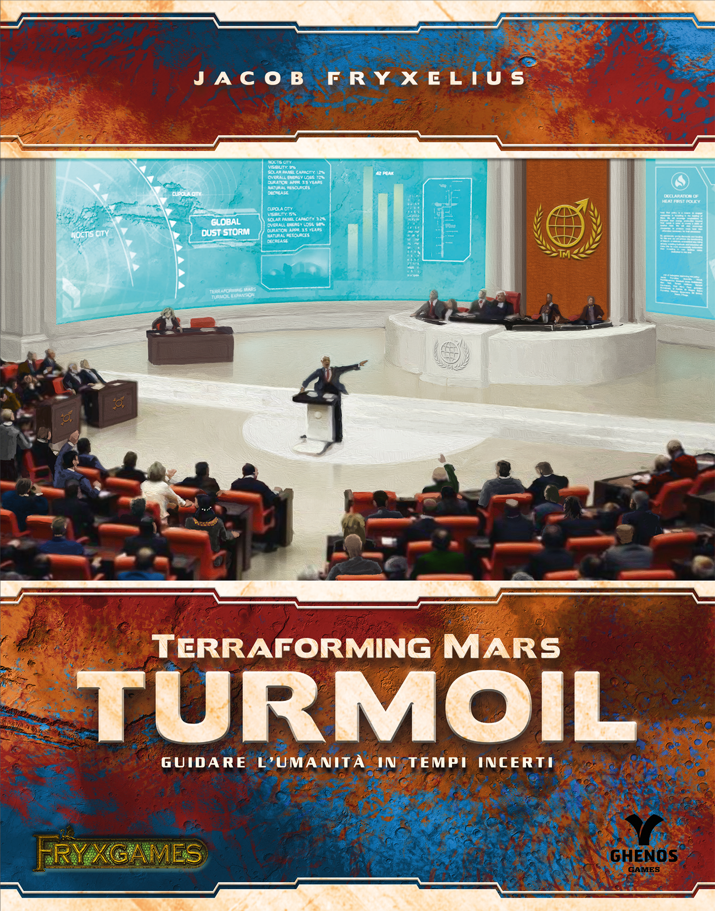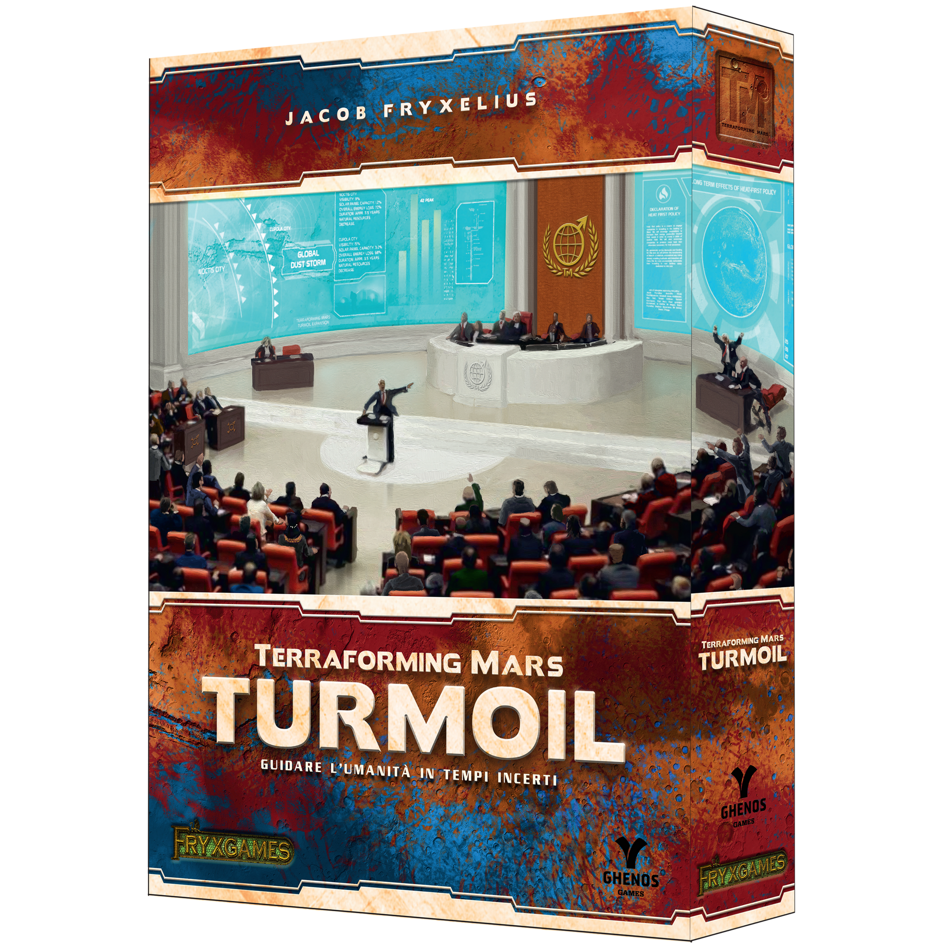Martian civilization is on the brink of crisis. Ideologies clash, corporations vie for political control, and sandstorms and natural disasters threaten the planet's balance. In Turmoil , you must send delegates to the Terraforming Committee to influence global decisions and prepare your corporation for the turbulence to come. Only those who can adapt and anticipate change will thrive on Mars.