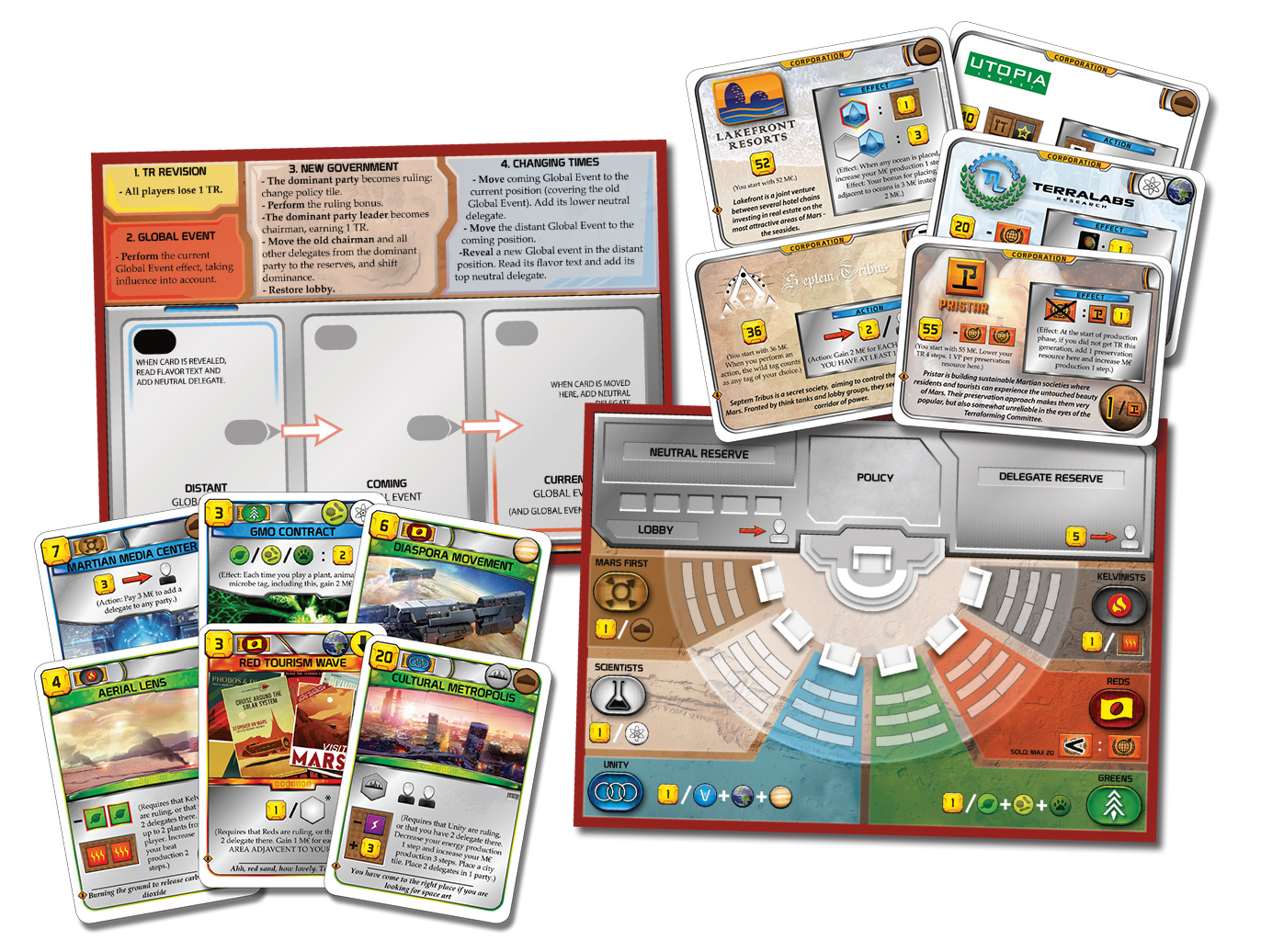 This expansion for Terraforming Mars immerses you in the more strategic and political side of the game. Delegates change the balance of power, while Global Events impose new challenges and radically change the course of the game. Turmoil introduces new Project cards, new corporations, and a gameplay dynamic that adds depth and complexity.