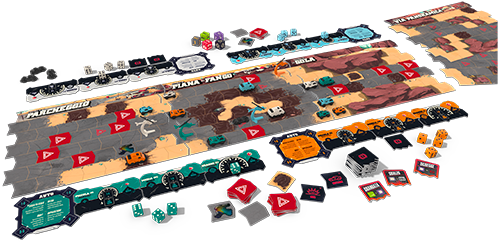 Thunder Road: Vendetta is an adrenaline-fueled racing board game where you'll pilot powerful , modified cars , ready to do anything to reach the finish line. Driven by the roll of the dice , you'll guide your crew through dangerous roads , avoiding obstacles, ramming opponents, and firing deadly weapons.