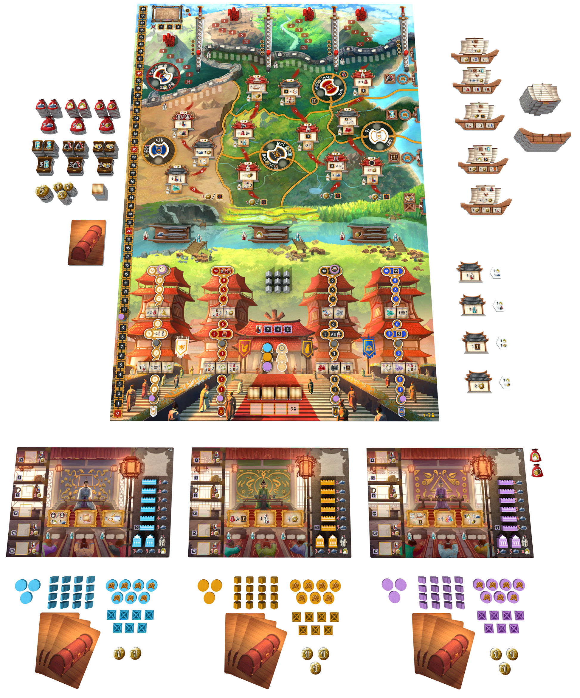 Created by renowned author Daniele Tascini , this title combines deep mechanics and a historical setting inspired by ancient China , offering a compelling gaming experience full of meaningful choices. Evocative illustrations and carefully crafted components immerse players in an elegant and competitive world, where only the most skilled strategists can rise to power.