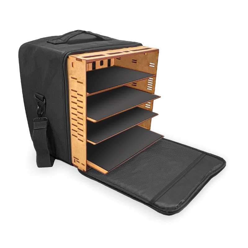 The ARMY transport case has been specially designed to protect your miniatures during transport. Made of lightweight and durable Oxford fabric and padded for greater durability, it will allow you to transport more than 200 miniatures safe and sound distributed across its 4 levels.