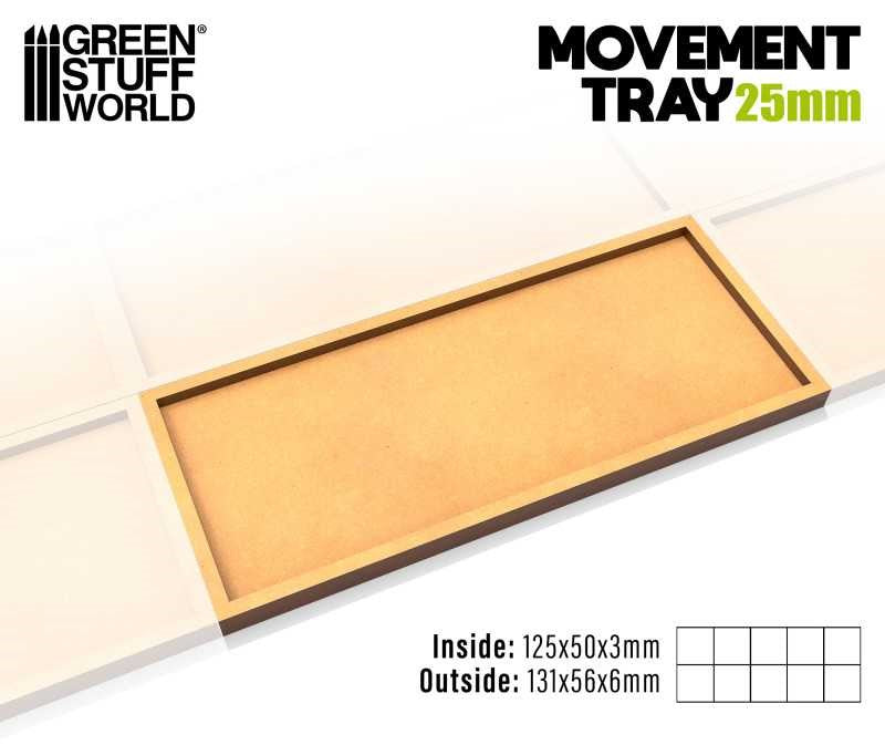 Pack contains 2x MDF movement trays for units in 5x2 rectangular formation (25mm bases) . Compatible with Warhammer The Old World.