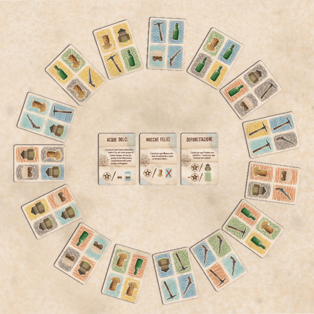 Circle the Wagons è un gioco di carte competitivo progettato per 2 giocatori, dove dovrete competere per costruire la città più straordinaria del vecchio West. Con oltre 800 modi unici per accumulare punti e una miriade di combinazioni possibili nel posizionamento delle carte, Circle the Wagons vi offrirà una sfida sempre nuova e avvincente ad ogni partita!