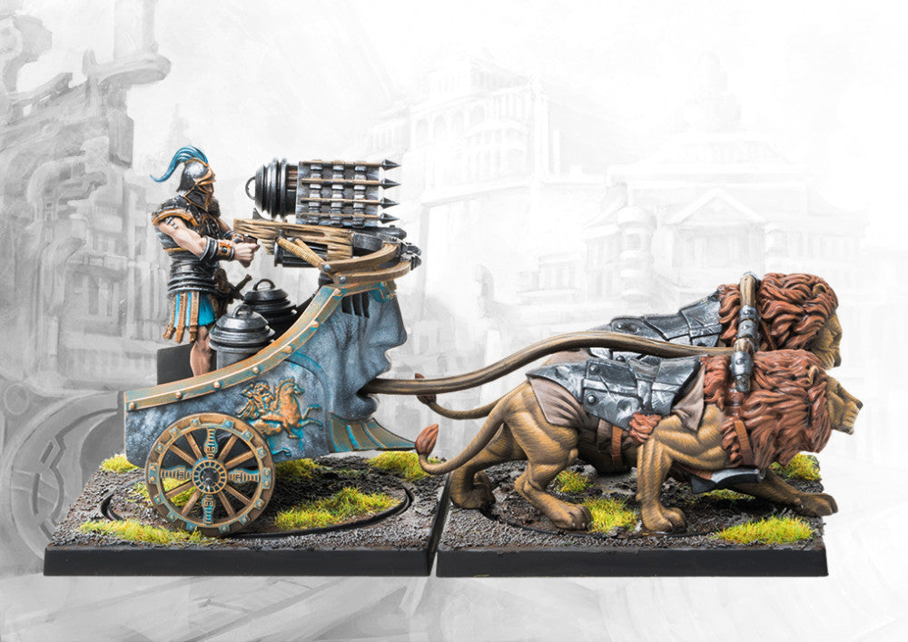 Confezione duale di miniature per la fazione delle City States di Conquest. Possibile assemblare il modello come 1 Skorpios o, in alternativa, come 1 Flogobolon.