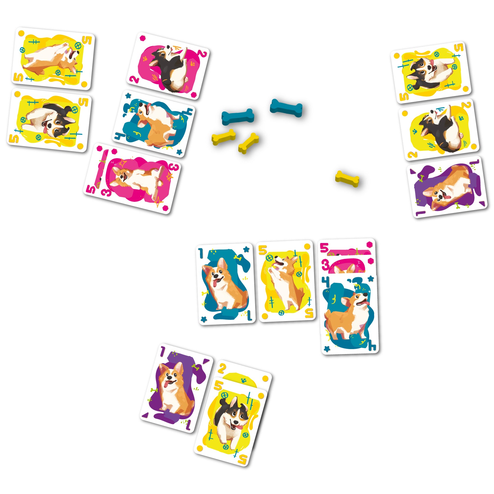 Corgi è un divertente gioco da tavolo push your luck perfetto per famiglie e gruppi di amici, in cui dovrai offrire le migliori cucce a simpaticissimi Corgi creando le combinazioni giuste di carte. L’obiettivo è comporre set di numeri uguali, colori uguali oppure numeri tutti diversi, facendo attenzione a non rischiare troppo… perché se peschi un doppione, i Corgi potrebbero scappare da un altro giocatore!