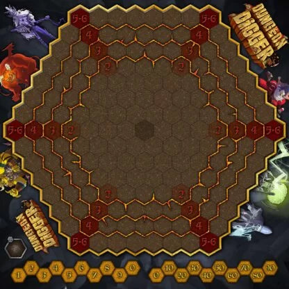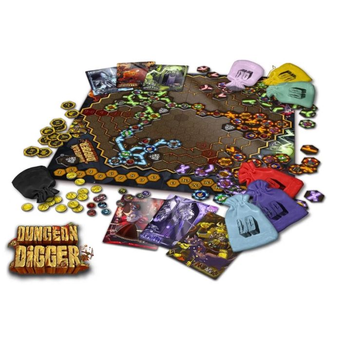 Dungeon Digger è un gioco da tavolo di dungeon building strategico progettato per 2-6 partecipanti, ambientato in un mondo comic-fantasy in cui TU sarai il sinistro sovrano del Dungeon. Scava profondamente, costruisci il tuo dungeon e annienta i tuoi rivali!