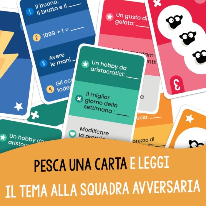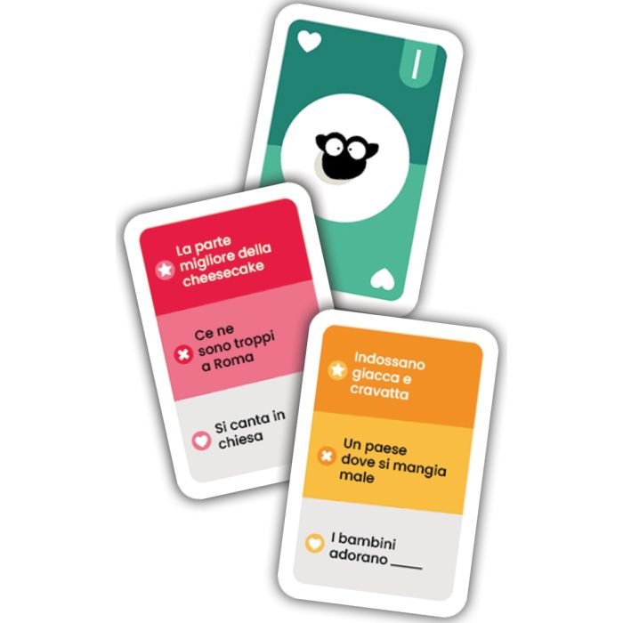Holy Sheep è un gioco da tavolo divertente e irriverente perfetto per gruppi di amici o famiglie che amano ridere insieme e mettersi alla prova. L’obiettivo è semplice ma geniale: pensare tutti allo stesso modo! I membri di ogni squadra devono rispondere all’unisono alle domande proposte, e solo se dite tutti la stessa cosa conquisterete i punti.