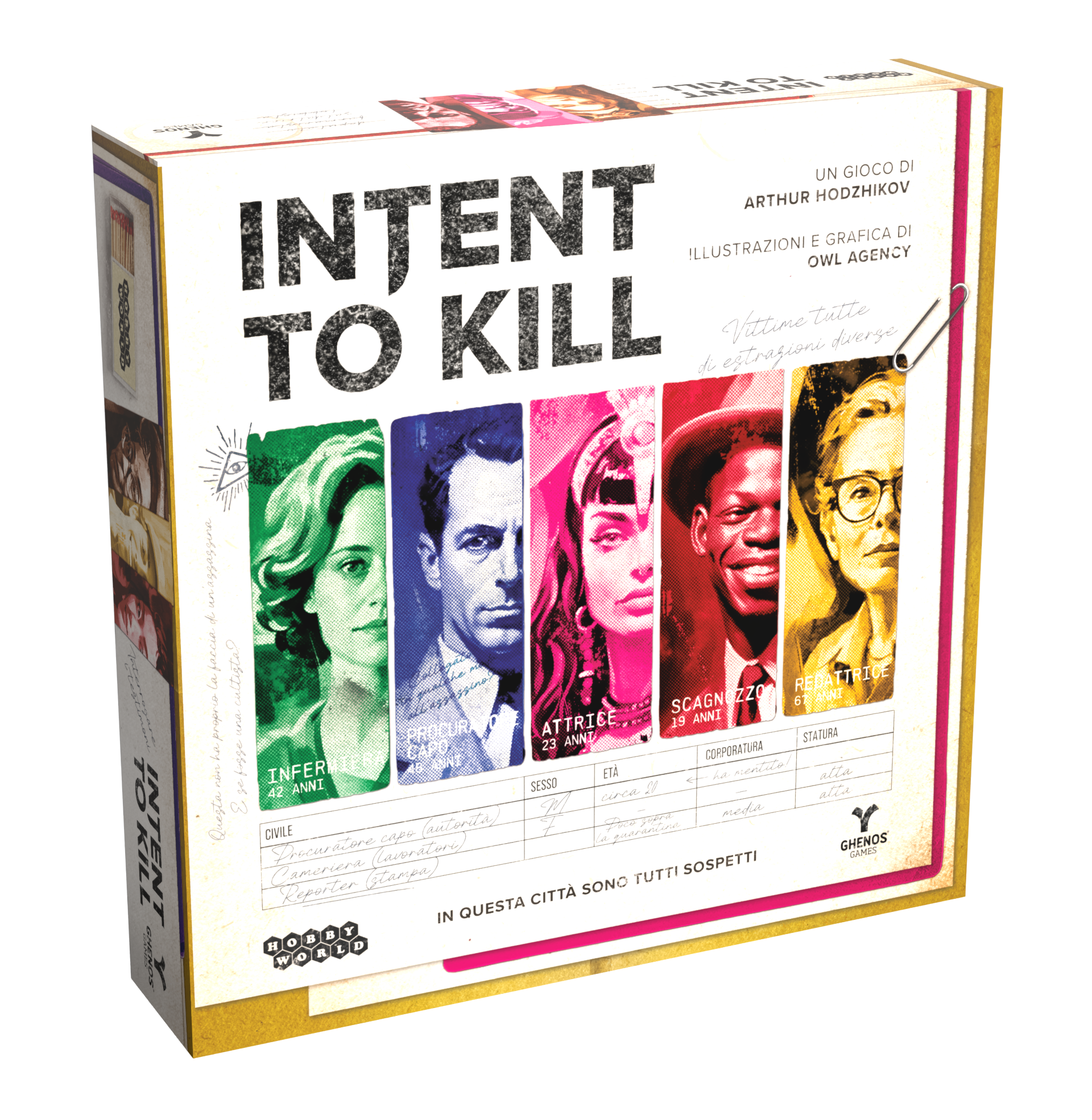 Intent to Kill è un intenso gioco da tavolo deduttivo e psicologico ambientato negli Stati Uniti degli anni ’60, un’epoca segnata da cinismo, paura e crescente criminalità. La città è sconvolta da una serie di omicidi e i civili diventano pedine inconsapevoli di un pericoloso gioco mentale che sta appena iniziando.