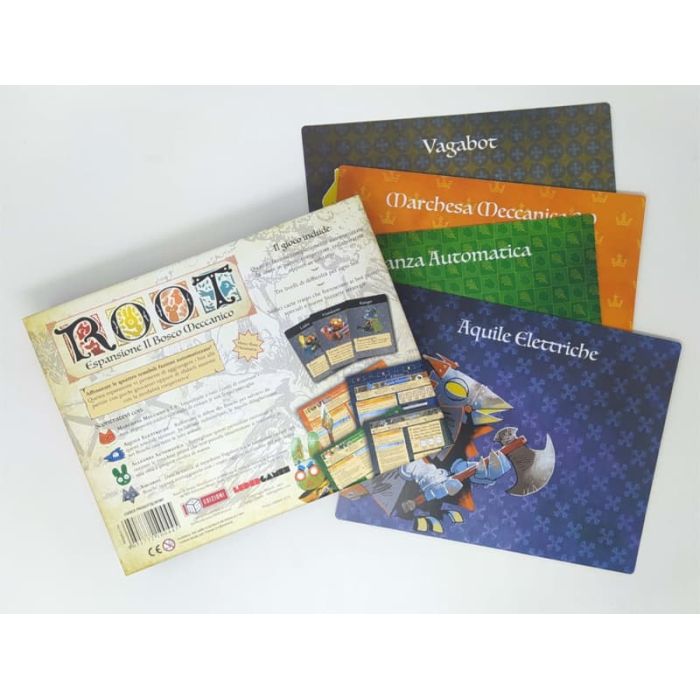 Root - Il Bosco Meccanico è un'espansione per il gioco da tavolo asimmetrico Root, che introduce le quattro temibili fazioni automatizzate! Questa espansione infatti vi permette di aggiungere i Bot alle partite con pochi giocatori oppure decidere di sfidarli insieme ai vostri amici scegliendo la modalità delle partite cooperative.