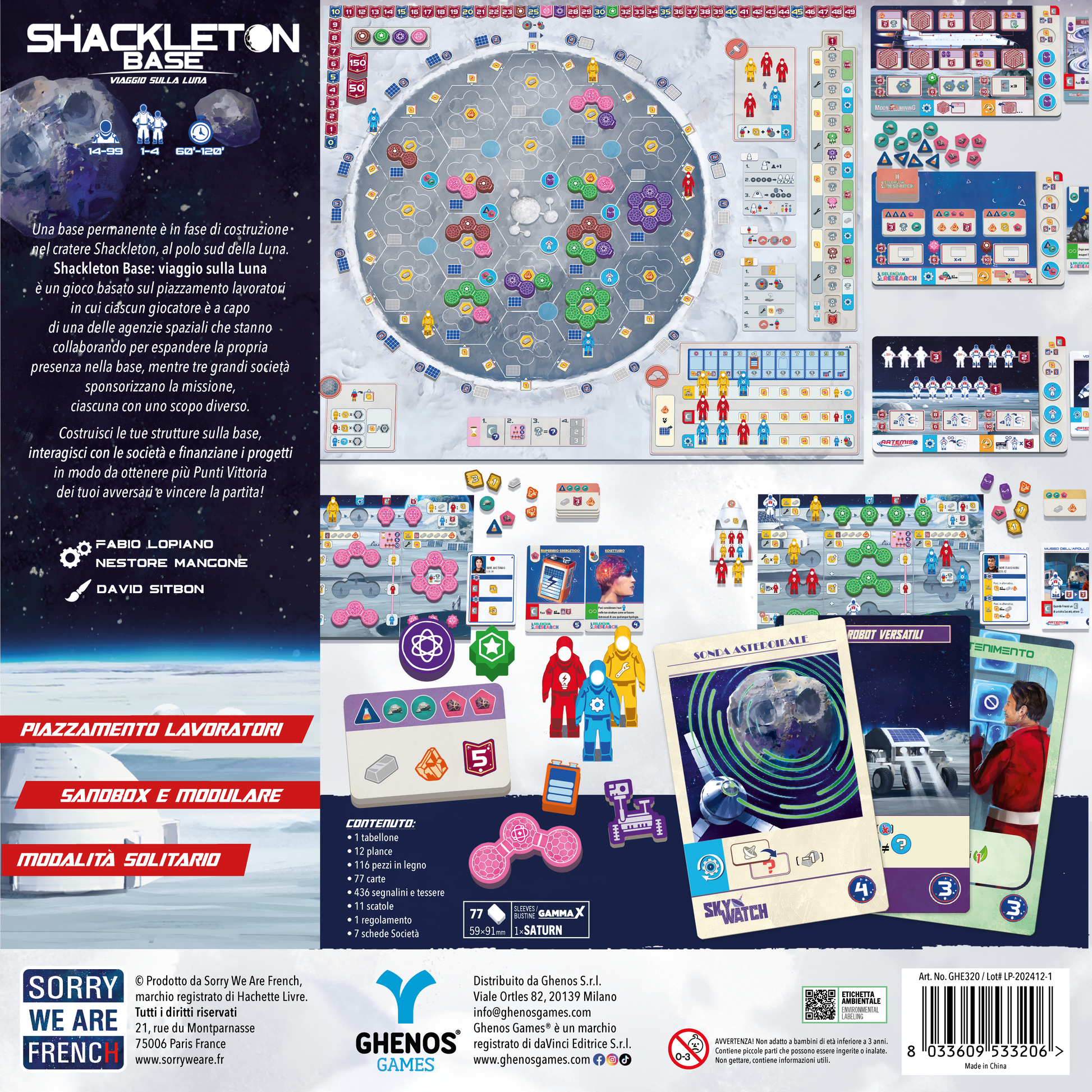 Una base permanente è in fase di costruzione nel cratere Shackleton. In questo avvincente gioco da tavolo gestionale a tema spaziale, assumerai il ruolo di un’agenzia spaziale impegnata ad espandere la propria influenza nella base lunare, mentre tre grandi società sponsorizzano la missione con progetti e richieste specifiche.