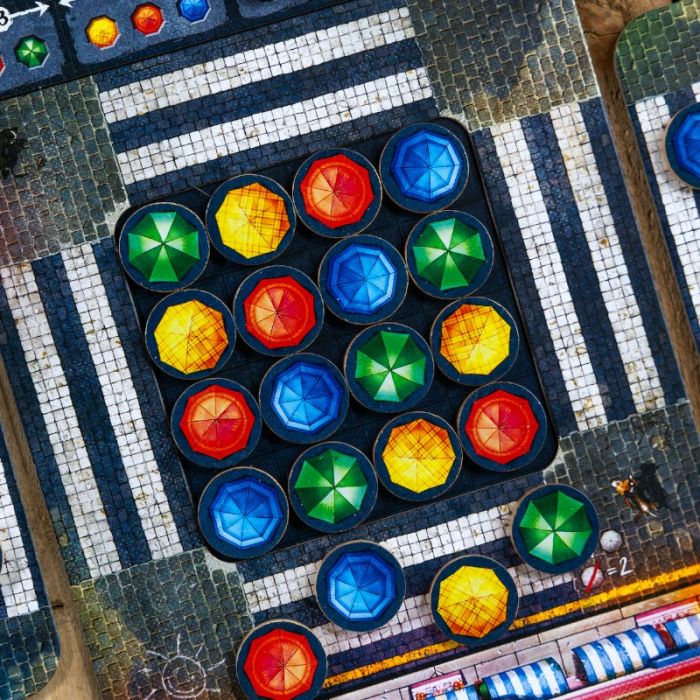 Benvenuti nel cast di Slidin' in the Rain! In questo gioco da tavolo, vi immergerete nell'affascinante mondo dei musical, dove il vostro compito sarà quello di far danzare gli ombrelli sul palco, creando coreografie vivaci e ben sincronizzate. Siete pronti a gestire i vostri ombrelli e a dar vita a uno spettacolo indimenticabile? Con Umbrella, ogni partita diventa un'avventura coinvolgente, perfetta per intrattenere sia i grandi che i più piccoli.
